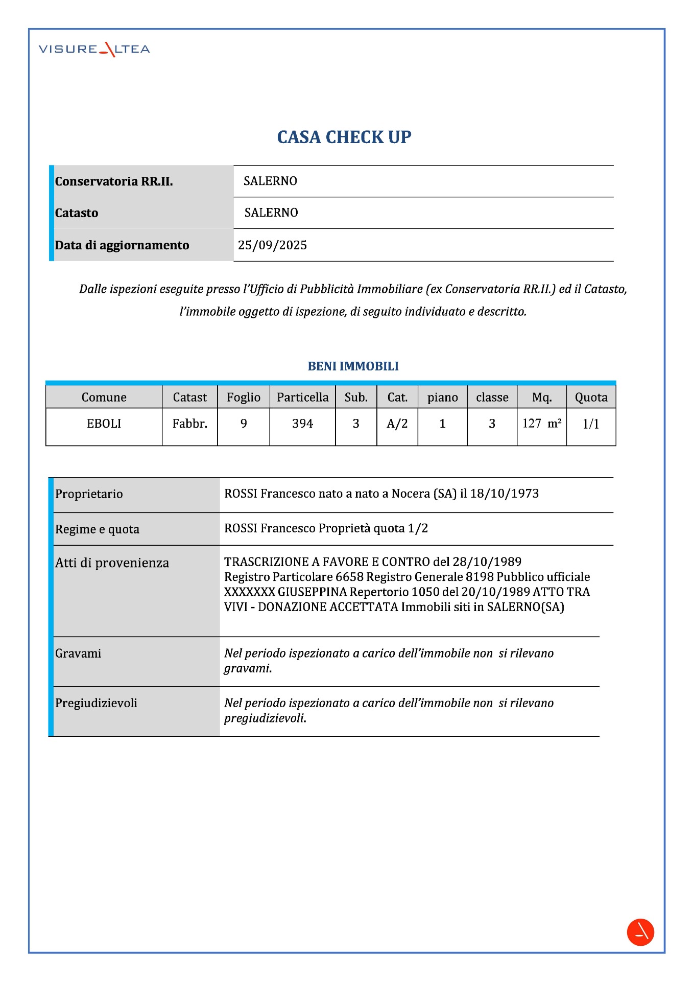 Un unico report chiaro e affidabile, pensato per evitare sorprese, blocchi notarili e rischi economici.