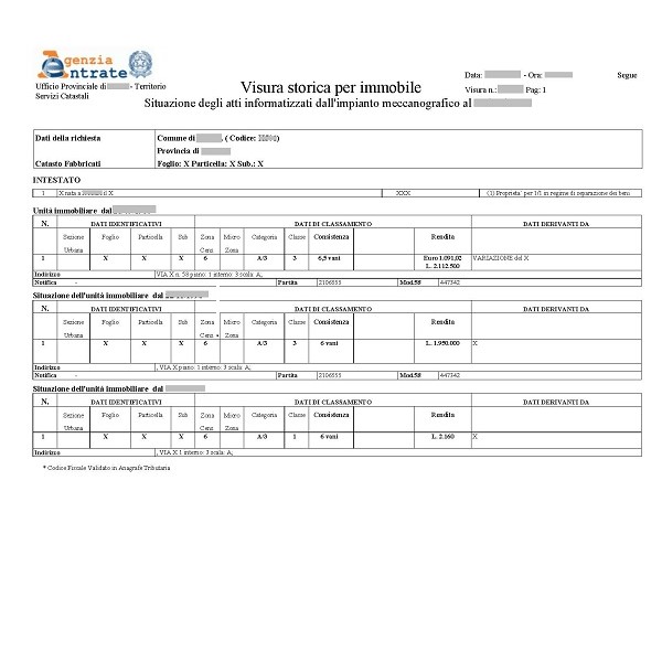 La visura catastale storica per immobile, riporta anche le eventuali variazioni ( con le intestazioni) dell'immobile nel tempo (dalla data di informatizzato ad oggi).