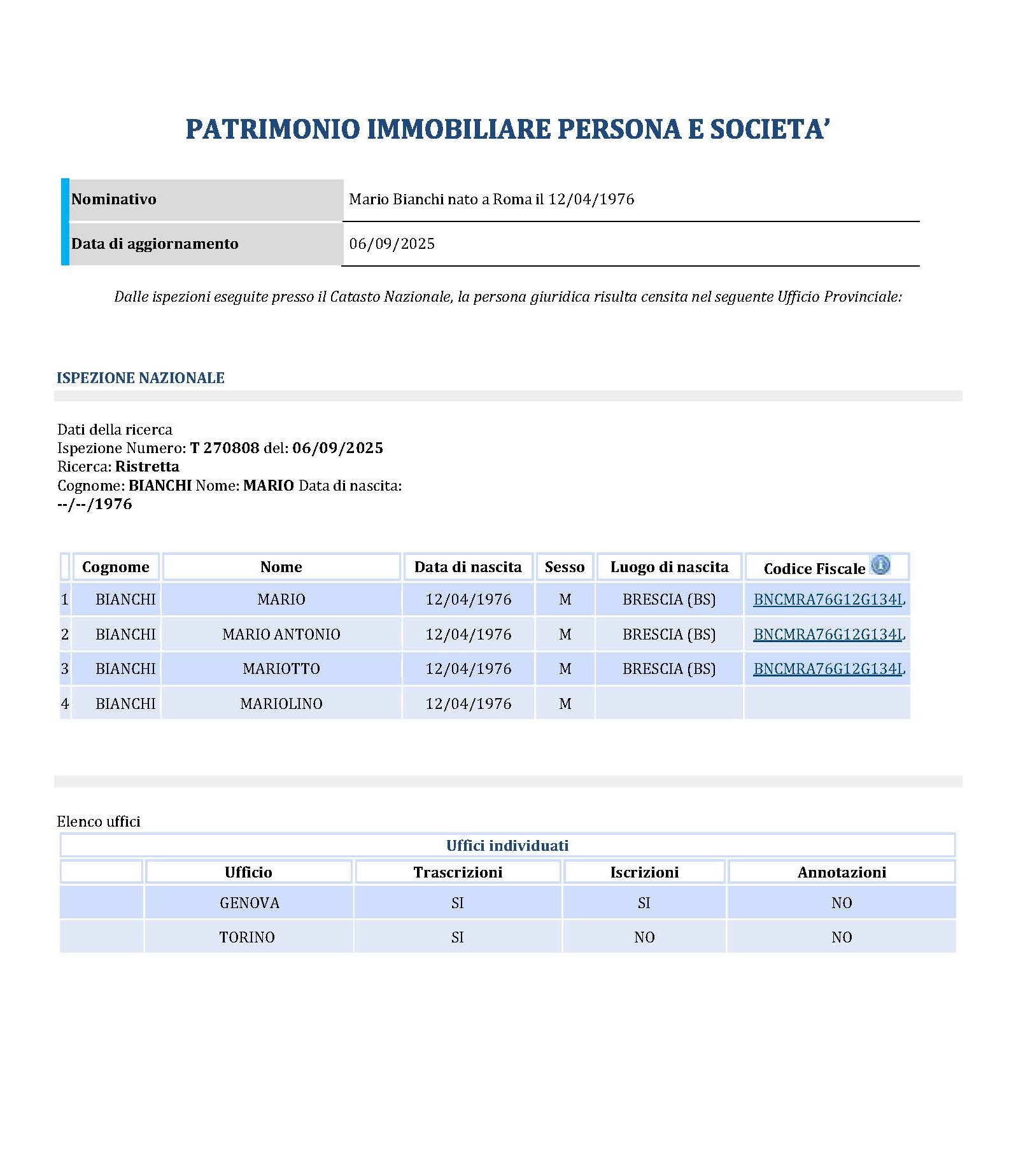 Report Patrimonio Immobiliare Persona e Azienda